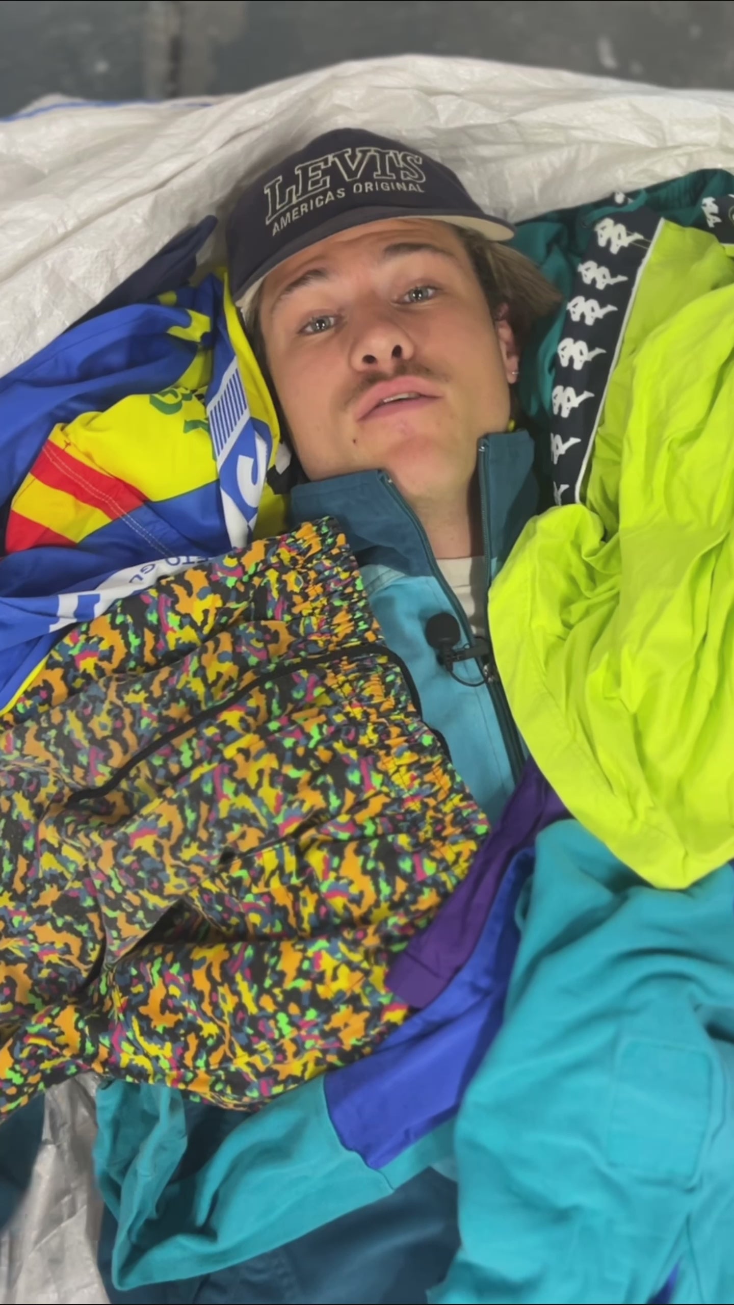 The Sportswear Sack (200 kg) includes a wide mix of T-shirts, track pants, sports jackets, shorts, and accessories made from fleece, polyester, cotton, and more.